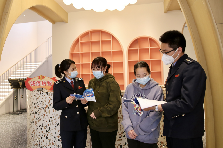 本次活动中,税务人员向景区内餐饮、住宿等行业的新办纳税人精准推送税收优惠政策,以及重点辅导发票开具与使用等涉税业务,不断释放税收政策红利,营造诚实守信的营商环境,助力商户高质量发展。同时,税务人员向景区游客发放政策宣传小册子,向其推广便利化税费办理渠道,并积极引导人民群众在日常生活中重诚信、守信用,使诚信的理念融入广大群众的灵魂深处。