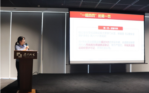 “巾帼文明岗”成员在会上给大家普法宣传超限超载运输和道路运输经营许可法律法规,加深了企业的安全认识和诚信意识。同时全面展示了交通运输行业在加强诚信建设、推动高质量发展方面做出的努力和成果,向参会人员宣传信用建设的重要性和必要性,普及信用知识、推广信用成果。此次的宣传活动不仅弘扬了诚信文化,还提升了广大群众对交通运输行业信用体系建设的意识,树立了交通运输行业良好形象,让诚实守信的意识和观念深入人心。
