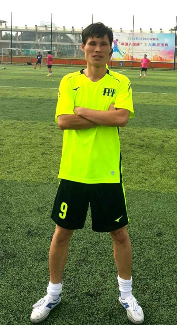 这位就是我们公认的第一主力:38岁高龄、已是两个孩子爹的梁振标(哈哈哈开个玩笑)!他是场上的灵魂人物!只要球在他脚下,那就基本没跑的,场上场下都放心了!