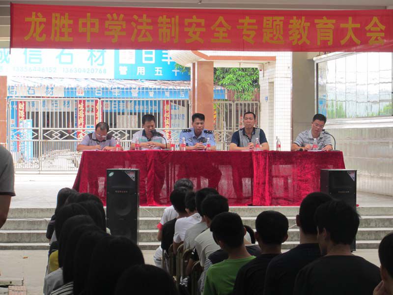 7月7日,龙胜派出所所长梁焕初到龙胜中学给学生上法制教育课。课堂上,梁所长向学生们讲解暑假期间需注意的安全问题,特别对外出安全游泳、不沉迷于网络和电子游戏、不与网友见面等问题作了详细的讲解。另外,针对学生容易发生的斗殴现象,梁所长还结合一些真实案例进行分析,教育同学们决不能触碰法律的底线,要做一名守法的学生。
