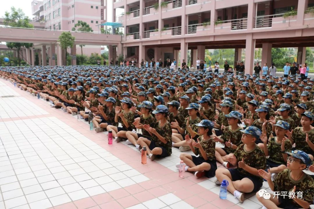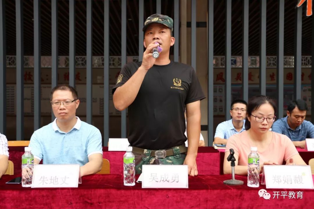 为培养学生国防意识,增强集体主义观念,加强学生的组织纪律教育,并起到强身健体的作用,8月25日上午8时许,在台山国防基地的大力支持下,亚星官网 金山中学七年级新生在学校精英广场举行了2019年新学年开学前与国防教育开班仪式。台山国防训练基地总教官吴成勇同志和金山中学郑娟馥校长、周永雄、朱地丈副校长、七年级900多名学生、60多名学生会干部(学生辅导员)等出席了开班仪式。