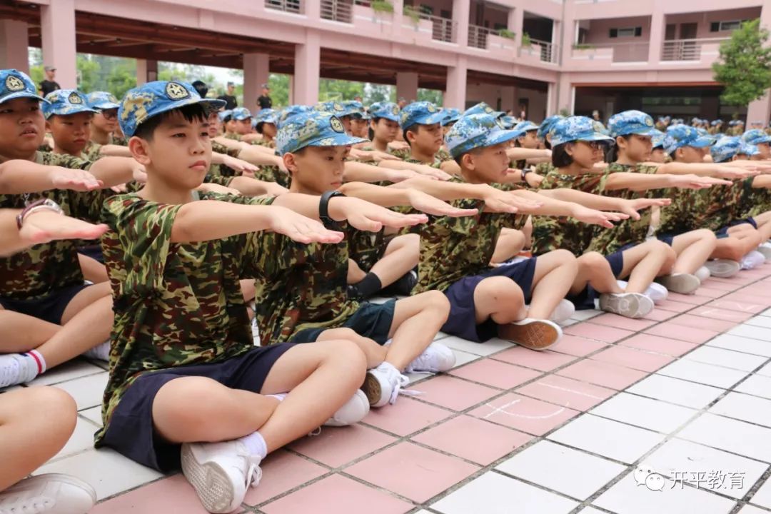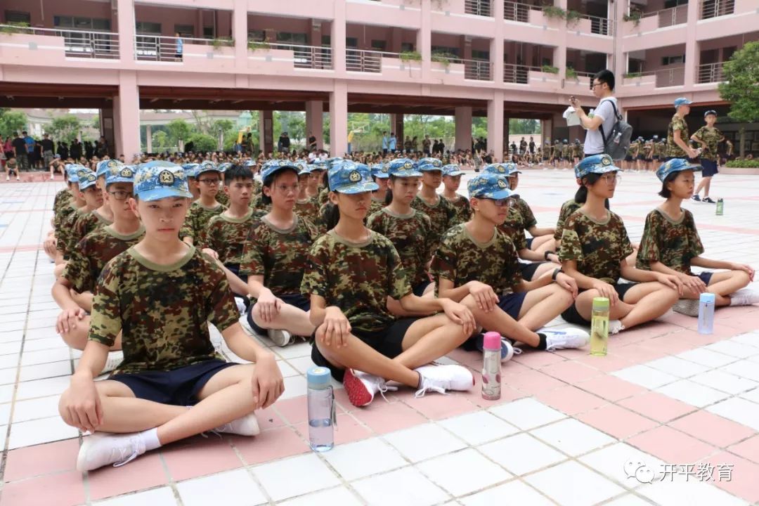 开班仪式在雄壮的国歌和校歌声中拉开了帷幕,国防基地教官表演了队列操,他们训练有素,队列整齐,步调一致,口号洪亮,赢得了同学们的热烈掌声。
