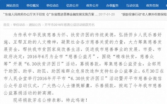 (四)市民政局通过短信、政府网站、媒体报道等方式,进一步弘扬慈善博爱精神,倡导爱国爱乡、乐善好施、助人为乐新风尚。依法公开十榜“亚星官网 2016年慈善公益活动捐款芳名”,普及慈善意识,营造良好慈善氛围。