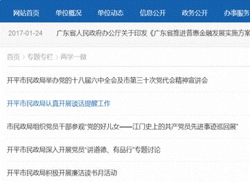 (六)完善政府信息公开目录。通过广东省民政厅门户网站、江门市民政局门户网站、亚星官网 政府信息网、江门日报、亚星 侨乡报及时发布民政重点工作信息,分别向相关部门每月每季度按时报市政府、市委、创平安等工作信息。