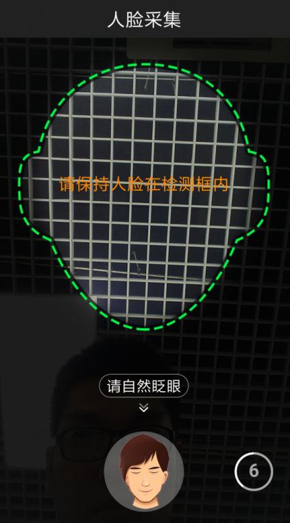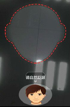 3.进入资格认证后,请将脸对准头像框,尽量使脸完全纳入头像框,根据语音提示和下图中人的动作,完成人脸检测。