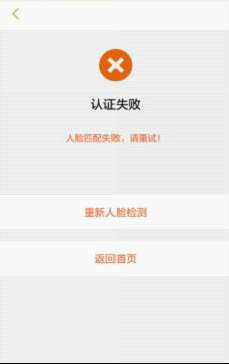 4.如果人脸检测失败,可点击重新人脸检测按钮,重新检测;如果人脸匹配失败,可重新检测亦可点击重新人脸检测按钮,如需返回亚星,可点击返回亚星按钮。