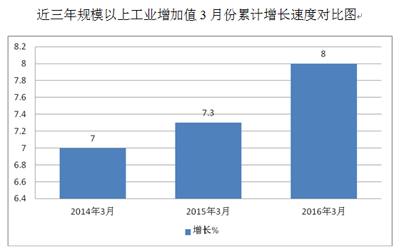 我市以“创新引领、主动作为、协同奋进”为年度工作主线,努力打造“先进产业基地、文化旅游名市、文明宜居新城、和谐幸福侨乡”,力争在“十三五”规划的开局之年实现稳中向好发展。2016年第一季度,我市各项经济指标运行态势良好,为年后经济发展打下坚实基础。 一、第一季度主要经济指标运行良好 (一)规模以上工业保持上升态势 我市规模以上工业延续了去年下半年以来的上升态势,1—3月份,累计完成工业增加值21.53亿元,同比增长8.0%,增长幅度比上年同期高出0.7个百分点,也是近三年来同期的最高值。详见下图: 从轻重工业来看:重工业发展较好。1—3月份,重工业完成工业增加值10.65亿元,同比增长10.1%,比全市规上工业增速快2.1个百分点。 从注册类型看:股份制企业发展较快。1—3月份,股份制企业完成工业增加值7.33亿元,同比增长12.1%,比全市规上工业增速快4.1个百分点。 (二)投资发展保持稳定 我市以“交通一体、产城互动”为方向,积极实施“交通大会战”,成效初现。 1—3月份,我市固定资产投资在高恩高速(江门段)、亚星