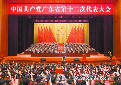 图为中国共产党广东省第十二次代表大会胜利闭幕 来源:南方日报 图为胡春华同志主持大会 来源:南方日报 中国共产党广东省第十二次代表大会圆满完成各项任务,于5月26日在广州胜利闭幕。大会审议通过了中共广东省第十一届委员会报告和中共广东省第十一届纪律检查委员会工作报告,选举产生了广东省出席党的十九大代表,选举产生了中共广东省第十二届委员会和省第十二届纪律检查委员会。 这次大会是一次深入贯彻习近平总书记系列重要讲话精神和治国理政新理念新思想新战略的大会,是一次统一思想、凝聚力量、求真务实、团结奋进的大会,必将对广东发展产生重大而深远的影响。大会号召,全省各级党组织、广大共产党员和人民群众,更加紧密地团结在以习近平同志为核心的党中央周围,以习近平总书记对广东“四个坚持、三个支撑、两个走在前列”的要求为统领,认真落实报告的各项工作部署,不忘初心、继续前进,不断开创广东改革发展新局面,以优异成绩迎接党的十九大胜利召开,为实现“两个一百年”的宏伟目标和中华民族伟大复兴的中国梦而努力奋斗! 胡春华同志主持大会。 出席大会并在主席台前排就座的有大会主席团常务委员会委员马兴瑞、李玉妹、王荣、任学锋、林雄、徐少华、王伟中、黄善春、慎海雄、林少春、邹铭、施克辉。 参加大会并在主席台就座的有:黄华华、黄丽满、朱小丹、黄龙云、朱森林、卢瑞华、张帼英、卢钟鹤、黄先耀、陈小川、陈继兴、黄业斌、罗娟、邓海光、何忠友、陈云贤、林木声、刘日知、龚稼立、郑红、招玉芳、陈蔚文、陈建华、丘海、刘悦伦、戴北方、赵继东、雷群昆、陈春声、曹志安、王昌顺、谭万庚、王宗春、张巨惠、黄浩、厉有为、梁广大、刘玉浦、蔡东士、刘国裕、钟阳胜、肖志恒、梁伟发、张广宁、刘联华、雷于蓝、温兰子、郑鄂等。 省各民主党派、工商联负责人和无党派、宗教界代表人士周天鸿、王珣章、温思美、马光瑜、王文杰、李心、陈丹、明生、黄炳章、梁明、释宏满、鲁修禄、赖保荣、樊宏恩应邀参加了大会并在主席台就座。 上午9时,大会进行了选举。到会的900名代表以无记名投票的方式,选举产生70名广东省出席党的十九大代表,中央提名的胡春华、卢展工同志当选党的十九大代表。选举出由92名委员、17名候补委员组成的中国共产党广东省第十二届委员会,选举出由55名委员组成的中国共产党广东省第十二届纪律检查委员会。 大会对胡春华同志代表中共广东省第十一届委员会所作的报告给予高度评价。大会认为,习近平总书记对广东工作的重要批示,是习近平总书记系列重要讲话精神和治国理政新理念新思想新战略在广东的具体化,对广东发展具有重大的里程碑意义,是报告的灵魂和主线。报告高举中国特色社会主义伟大旗帜,以邓小平理论、“三个代表”重要思想、科学发展观为指导,全面贯彻党的十八大和十八届三中、四中、五中、六中全会精神,深入学习贯彻习近平总书记系列重要讲话精神和治国理政新理念新思想新战略,落实习近平总书记对广东工作的重要批示精神,实事求是总结了省第十一次党代会以来的工作,深入分析了广东发展面临的问题和挑战,明确提出了今后五年工作的指导思想和主要目标,全面部署了今后五年各项工作,符合党中央要求和广东实际,描绘了广东发展的宏伟蓝图,体现了全省人民的共同期盼,是指导广东未来一个时期发展的行动纲领。 大会充分肯定中共广东省第十一届委员会的工作,一致赞同报告对过去五年主要成就的总结,同意报告提出的今后五年全省工作指导思想、主要目标和主要任务部署。大会指出,习近平总书记对广东提出的“四个坚持、三个支撑、两个走在前列”要求,是指导思想的核心要义,是广东工作的总纲。“四个坚持”是旗帜和方向,“三个支撑”是使命担当和发展路径,“两个走在前列”是总的奋斗目标。必须以习近平总书记系列重要讲话精神和治国理政新理念新思想新战略为引领,贯彻落实习近平总书记重要批示精神,务实进取、奋发有为,努力实现各项目标任务,高质量全面建成小康社会,加快建设社会主义现代化。 大会充分肯定省第十一届纪律检查委员会的工作。大会要求,全省各级纪律检查机关要高举中国特色社会主义伟大旗帜,深入学习贯彻习近平总书记系列重要讲话精神和治国理政新理念新思想新战略,认真落实习近平总书记对广东工作“四个坚持、三个支撑、两个走在前列”的重要批示精神,紧紧围绕省第十二次党代会确定的目标任务,坚定不移惩治腐败,驰而不息改进作风,不断深化标本兼治,进一步严明党的纪律规矩、严肃党内政治生活、加强党内监督,推动党风廉政建设和反腐败工作再上新台阶,以全面从严治党新成效为我省在新的起点上再创新局提供坚强的纪律保证。 胡春华在讲话中指出,贯彻落实省第十二次党代会精神,努力在全面建成小康社会、加快建设社会主义现代化新征程上走在前列,是摆在我们面前的重大政治任务。各级党组织、广大党员要旗帜鲜明讲政治,始终在政治上思想上行动上同以习近平同志为核心的党中央保持高度一致,把深入学习习近平总书记重要批示精神与贯彻落实省党代会精神充分结合起来,不断深化理解,把握精神实质,切实以重要批示精