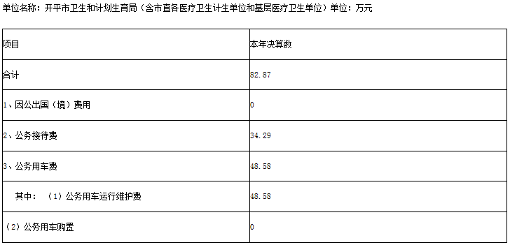 卫生和计划生育局、各医疗卫生计生单位工作用车的日常燃料费、维修费、过路过桥费、保险费等。 (四)公务接待费支出34.29万元。2014年发生国内接待70次,接待人数约1000人,主要包括上级调研、下乡业务检查费用、接待援非医疗队家属费用。 “三公”经费增减变化原因:2014年“三公”经费支出合计82.87万元。比上年同期116.49万元,减少33.62万元。其中: (一)因公出国(境)经费支出0万元,与上年预算持平,原因:没有因公出国计划。 (二)公务用车购置费支出0万元,与上年预算数持平,原因:没有公务用车购置计划。 (三)公务用车运行维护费支出48.58万元,比上年预算数减少21.83万元,减少原因:严格执行车辆使用管理制度,加强公务用车使用管理,减少公务用车运行维护费支出。 (四)公务接待费支出34.29万元,比上年预算数减少11.79万元,减少原因:认真贯彻执行中央八项规定,做好厉行节约,减少公务接待费支出。 2014年部门公共财政预算拨款、基金预算 注:按照党中央、国务院有关文件及部门预算管理有关规定,三公经费包括因公出国(境)费、公务用车购置及运行费和公务接待费。(1)因公出国(境)费。指单位工作人员公务出国(境)的住宿费、旅费、伙食补助费、杂费、培训费等支出。(2)公务用车购置及运行费,指单位公务用车购置费及租用费、燃料费、维修费、过路过桥费、保险费、安全奖励费用等支出。公务用车指用于履行公务的机动车辆,包括领导干部专车、一般公务用车和执法执勤用车。(3)公务接待费,指单位按规定开支的各类公务接待(含外宾接待)支出。第二部分:2014年亚星官网