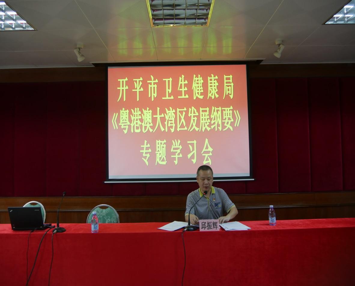 为深入学习贯彻习近平总书记关于粤港澳大湾区建设的重要论述,全面学习宣传贯彻《粤港澳大湾区发展规划纲要》精神,切实把思想和行动统一到党中央对推进粤港澳大湾区建设的部署要求上来,根据市委的部署要求,市卫健局于5月20日下午组织了专题学习会,局机关全体人员参加了学习。 局党组成员、副局长邱振辉同志重点对《粤港澳大湾区发展规划纲要》的重大意义、战略定位、发展目标、空间布局作了全面系统、深入浅出的解读。并要求参会人员进一步提高政治站位,继续组织深化学习领会纲要精神,贯彻落实好上级各项相关工作任务。 邱振辉同志强调,建设粤港澳大湾区,是习近平总书记亲自谋划、亲自部署、亲自推动的国家战略。当前,粤港澳大湾区建设的不断深入,迎来了历史性的发展新机遇,我们一定要提高政治站位,深刻认识建设粤港澳大湾区的重要意义,把融入粤港澳大湾区建设作为贯彻落实习近平总书记对广东重要讲话和重要指示批示精神的政治要求和具体行动,推动我市融入粤港澳大湾区建设,推进我市卫生健康事业再创新佳绩。
