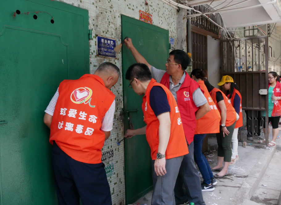 卫生计生局组织全局党员集中长清路9号3幢(即天御云景对面楼道)参与《文明与你同行 创建从我做起》党员志愿服务,清理“牛皮癣”。 活动现场,全体党员穿着红色“志愿者”衣服,局党员小分队,对小区墙体、楼道、铁门等“牛皮癣”进行全面清理。用乳胶漆将楼道粉刷一新,打扫小区环境卫生,对各种不文明行为进行劝阻,积极传播志愿服务理念。 通过此次志愿服务集中行动,进一步增强了全区广大党员干部的宗旨意识、树牢了群众观念、提升了服务水平,也让广大人民群众切实感受到了教育实践活动取得的成果。