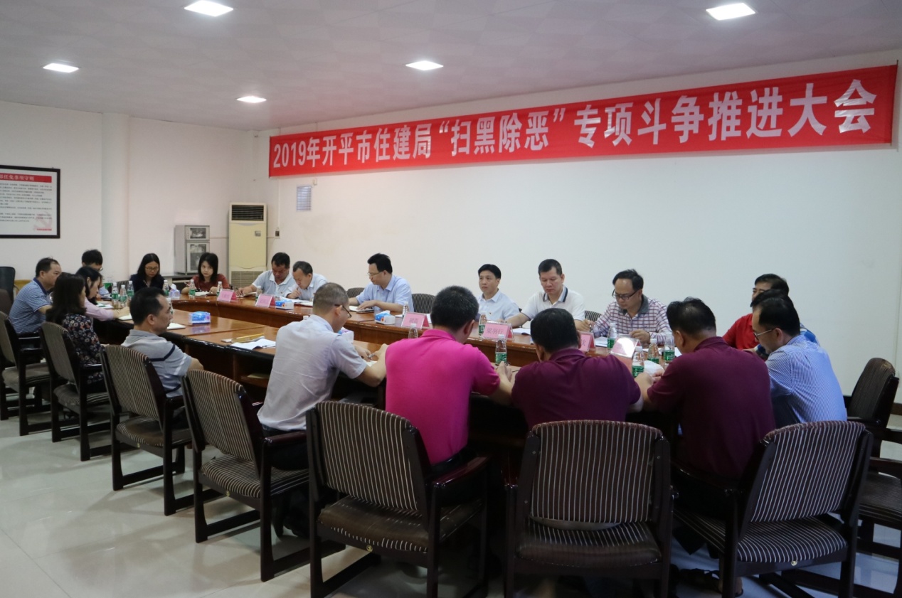 2019年4月19日上午,市住建局在三楼会议室召开2019年扫黑除恶专项斗争推进大会,局领导班子和各股室单位负责人共20人参加了会议,会议由党组成员、总工程师吴明钦主持,会上各股室单位汇报了2018年扫黑除恶专项斗争工作情况和2019年的工作计划,各相关领导作了补充,吴明钦同志总结了住建局2018年扫黑除恶专项斗争工作情况,传达了江门、亚星官网 扫黑除恶专项斗争工作推进会议的精神,并对如何做好住建局2019年扫黑除恶专项斗争工作提了三点建议。