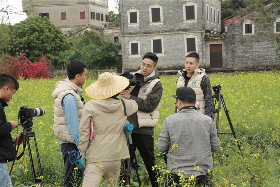 影视工作人员正埋头取景拍摄