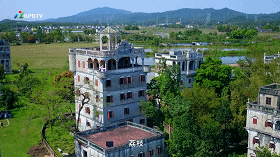 在中西合璧的碉楼群飘扬