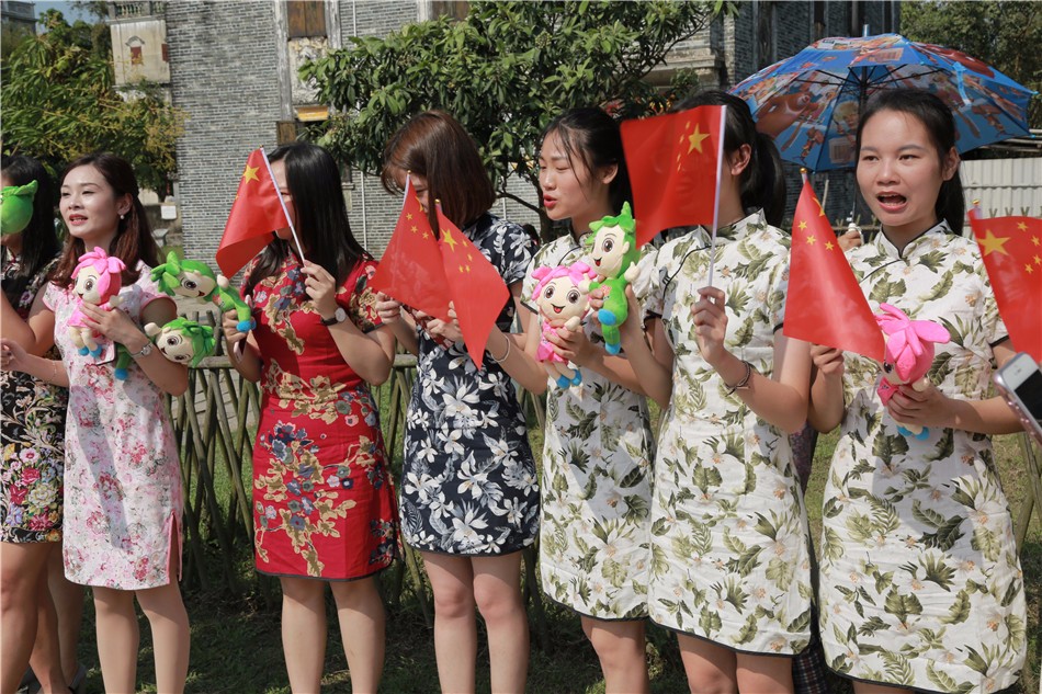 向大家分发国旗与公仔