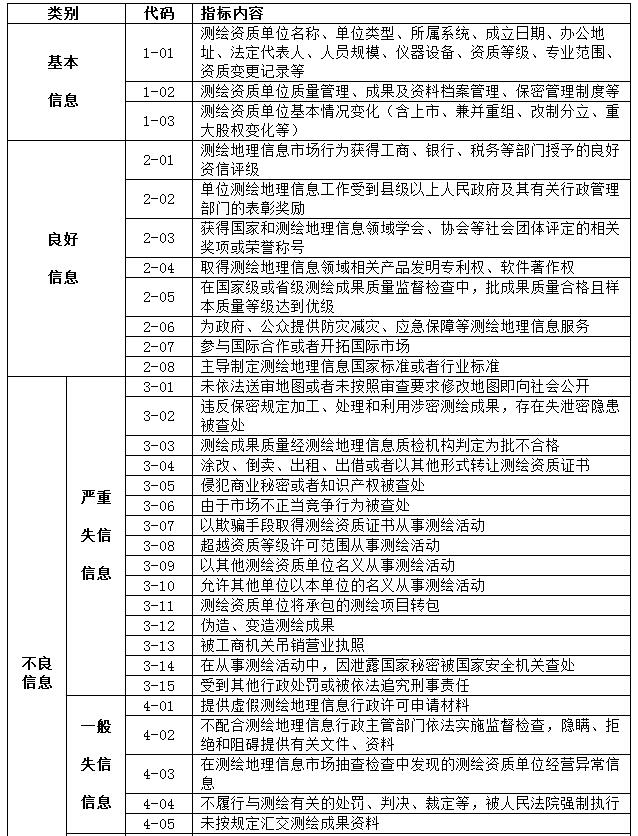测绘地理信息行业信用指标体系