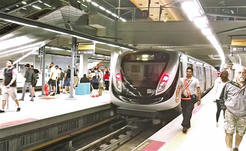 里约四号线地铁采用了中国企业生产的“奥运地铁”。里约市政府与北车长客股份公司签订了四号线15列(90辆)“奥运地铁”列车订单。中国列车直通里约奥运村,创造中国轨道交通装备在境外服务奥运会的历史。这条线路全长16公里,是里约南区观众前往比赛场馆的出行首选。徐惠喜 摄
