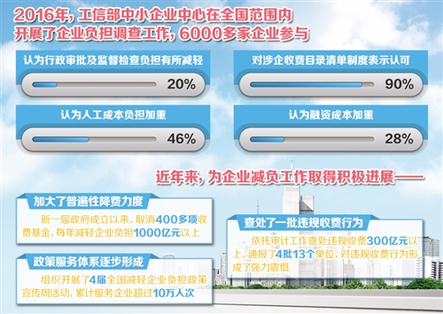 据了解,工信部中小企业中心今年在全国范围内开展了企业负担调查工作,6000多家企业参与。其中,46%的企业认为人工成本负担加重,28%的企业认为融资成本加重。同时,有20%的企业认为行政审批及监督检查负担有所减轻。