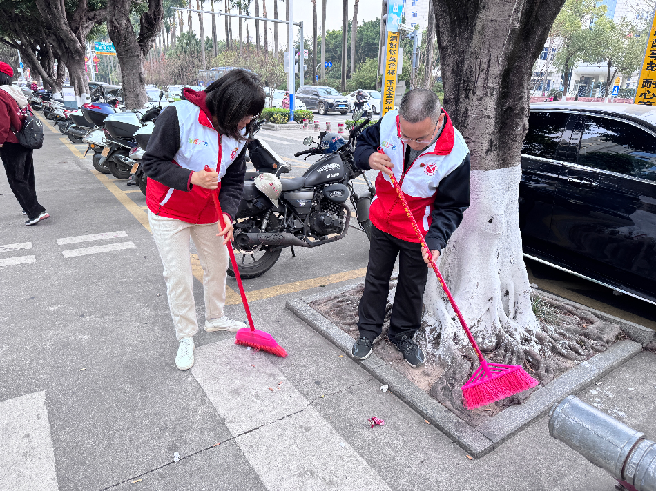 为积极响应国家关于秋冬季爱国卫生运动的号召,充分发挥党组织的战斗堡垒作用和党员的先锋模范作用,营造干净整洁、规范有序的人居环境,12月25日下午,市政务和数据局机关党支部携手公共资源交易中心党支部联合开展爱国卫生志愿服务主题党日活动。 活动当天,党员志愿者们身着志愿服务服装,手持扫帚、垃圾袋等工具,准时集合在市行政中心外围的道路上。在领导班子的带领下,党员干部迅速投入到清扫工作中,他们分工合作,有的负责清扫路面垃圾,有的则专注于清理绿化带内的枯枝落叶和废弃物。 在党员志愿者们的共同努力下,道路焕然一新,路面干净整洁,绿化带内的垃圾也得到了有效清理。此次活动不仅提升了市行政中心的周边环境质量,更是增强了党员们的服务意识和团队协作精神,以实际行动践行了“我为群众办实事”的初心和使命,为市民群众创造了一个更加整洁、健康的生活环境。