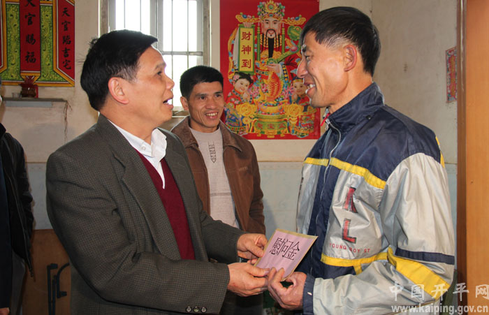 1月19日上午,市政协副主席余明达与市经济和信息化局、外侨局、市地税局等单位负责人到龙胜镇西杰村委会慰问贫困户送温暖。