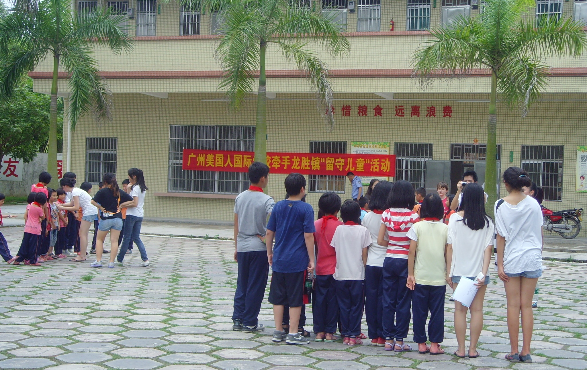 为认真开展未成年人思想道德建设,切实做好关爱农村“留守儿童”工作,5月18日,在龙胜镇妇联、关工委的组织协调下,广州美国人国际学校7名师生来到龙胜镇白村小学,第三度与42名“留守儿童”进行联谊交流。