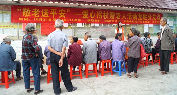 10月24日,龙胜镇分别在龙胜圩、大雄村委会设立发放点,开展“敬老送平安”——爱心拐杖赠老人活动,向该镇户籍年满80周岁以上长者派送爱心拐杖。接过爱心拐杖的长者喜笑颜开,纷纷感谢党和政府以及社会热心人士的关心。