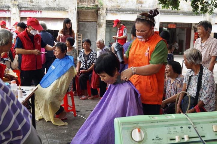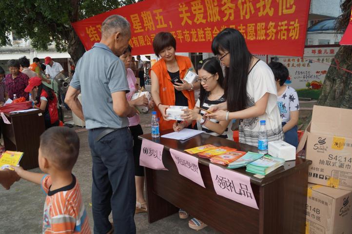 活动现场分为义务维修区、义诊区、义剪区、政策宣传区四大服务区域。其中,义务维修区由金羚集团党员干部为龙胜群众修理风扇、洗衣机及电饭煲等家电;义诊区由龙胜镇卫生院医生为群众测量血压、健康诊断等,提醒群众在日常生活中要注意的健康问题;义剪区由龙胜镇商会党员义工队伍为群众修剪发型;政策宣传区由龙胜镇机关党员干部为群众开展普遍直接联系群众、平安社区、安全生产、新农保等政策解释宣传、法律援助及办事指南咨询,现场为群众派发宣传册子及直联便民服务卡等资料。另外,活动现场还向六十岁以上的老人派发了150多份礼品。