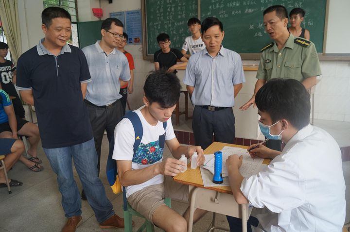 8月10日,龙胜镇征兵体检工作在龙胜中学全面展开,233名适龄青年参加今年体检。镇长利俊义一行在镇武装部部长冯永欣的陪同下到征兵体检现场检查指导工作。