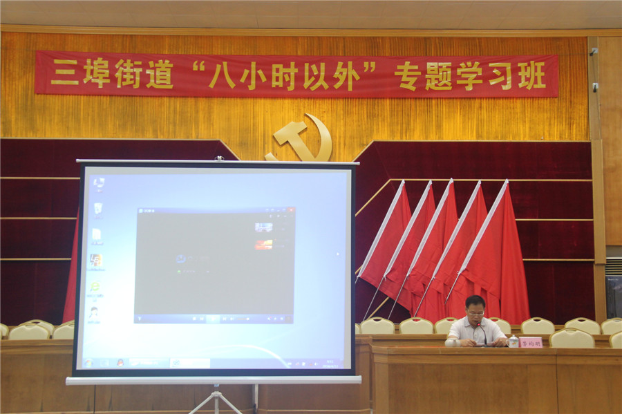为更好地解读“八小时以外”行为规范,进一步深入推进“八小时以外”监管活动,加强对党员干部的监督,加强街道党风廉政建设,4月13日上午,三埠街道组织机关全体党员干部共100多人,在办事处会堂举办“八小时以外”专题学习班。