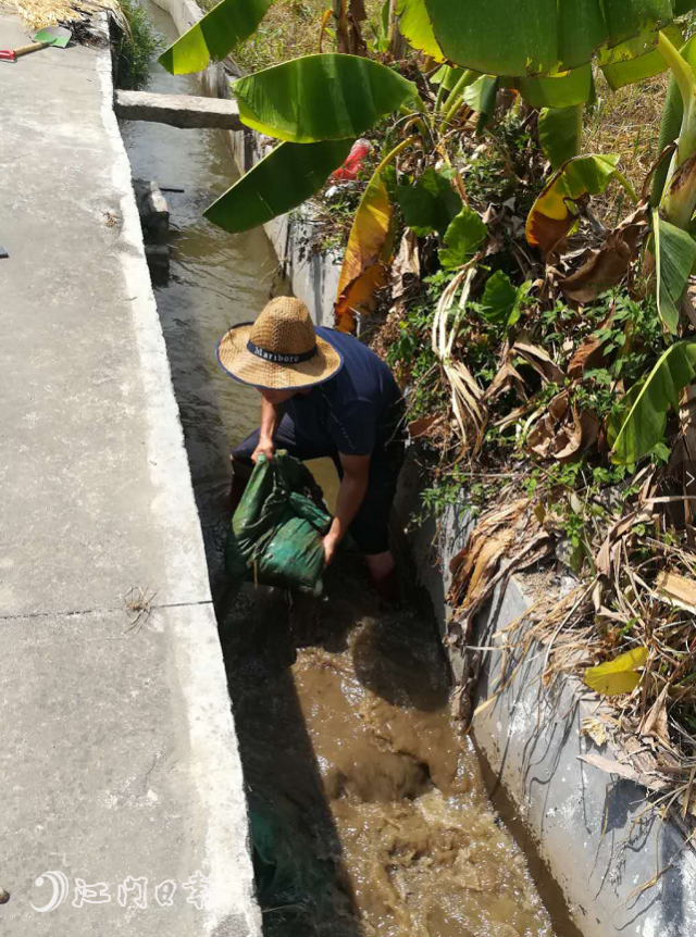 △沙塘镇党群齐心,疏通沟渠,拉布水管