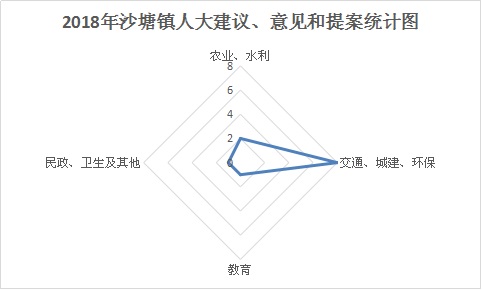 2018年,沙塘镇十七届人大五次会议、十七届人大六次会议、十七届人大七次会议期间及闭会期间,政府系统共收到人大代表提出的建议12件,其中,分属农业、水利2件,分属交通、城建、环保8件,分属教育1件,分属民政、卫生及其他1件。截至目前12件建议已全部办结。